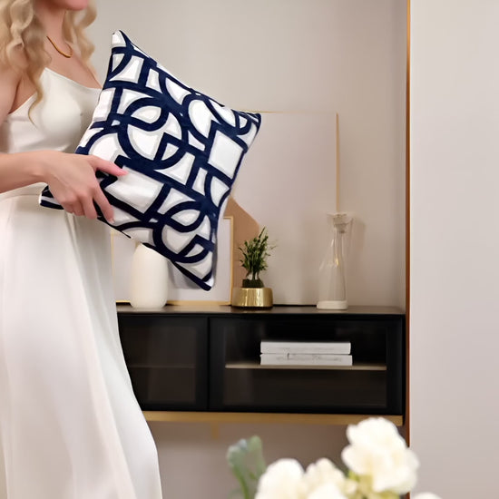 Designer Blue White Throw Pillow Cover 20x20| Luxury Home Decor | Modern Cushion | Zippered